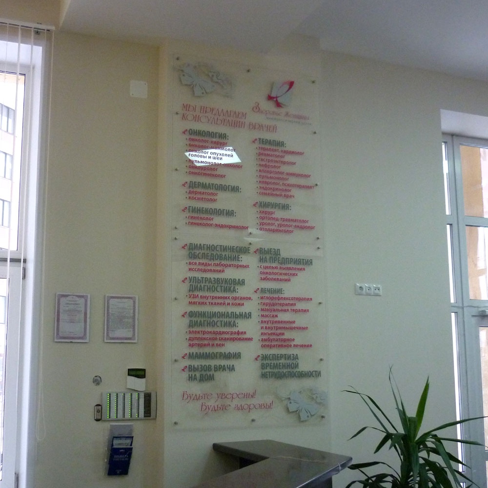 Псевдообъемные буквы (заголовок) из цветного акрила, карманы из оргстекла